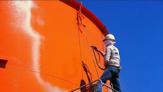 u DOW某工廠儲罐的防腐施工現(xiàn)場 u 公司員工在現(xiàn)場防腐面漆施工作業(yè)