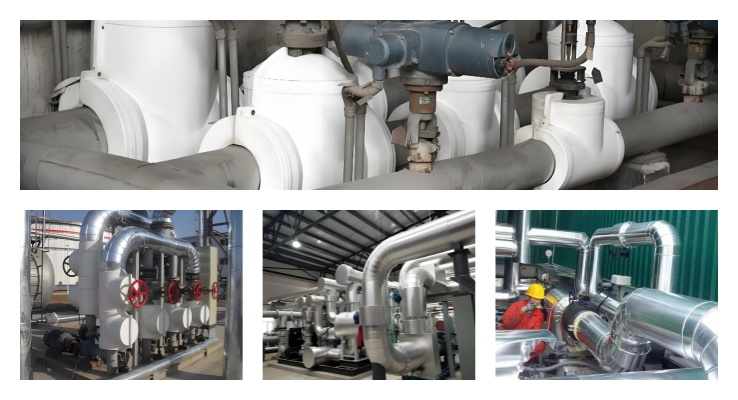 以上圖片是我公司在化工熱力管道、制藥生產(chǎn)車間的保冷管道的工程完工圖片, 保溫材料包扎嚴密,制作可拆卸結構的保溫支撐圈。管道標示清楚,蝦米彎和閥門保溫盒制作精美,整個保溫層布局合理,外觀精美,使用方便牢靠,為廣大客戶提供高技術、高質量的服務。特別能滿足GMP的潔凈管道的保溫施工服務。